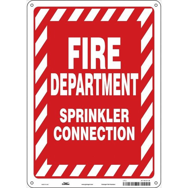 Safety Sign, Vertical Rectangle, Number of Printed Sides 1, English, Sign Legend Fire Department Sprinkler Connection, Sign Legend Background Color Red; White, Sign Legend Style Text