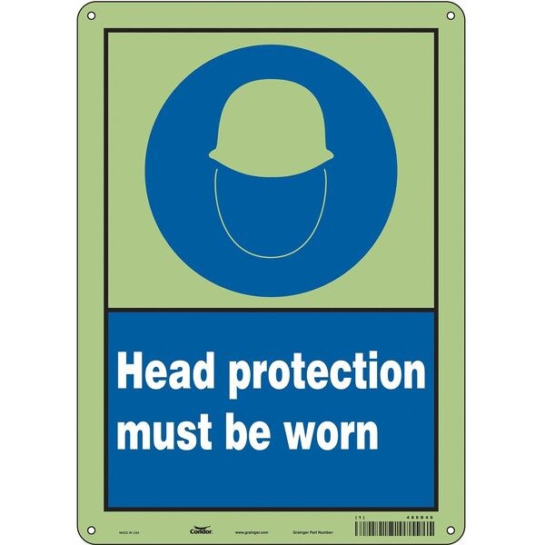 Safety Sign, Vertical Rectangle, Number of Printed Sides 1, English, Sign Format Other Format, Sign Legend Head Protection Must Be Worn, Sign Legend Background Color Blue, White, Sign Legend Style Symbol and Text
