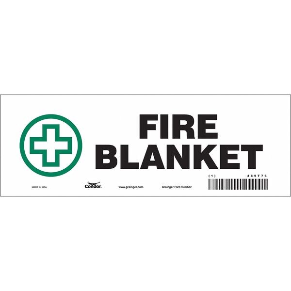 Safety Sign, Vertical Rectangle, Number of Printed Sides 1, English, Sign Format Other Format, Sign Legend Fire Blanket, Sign Legend Background Color White, Sign Legend Style Symbol and Text