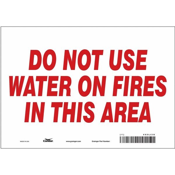 Safety Sign, Vertical Rectangle, Number of Printed Sides 1, English, Sign Format Other Format, Sign Legend Do Not Use Water On Fires In This Area, Sign Legend Background Color White, Sign Legend Style Text