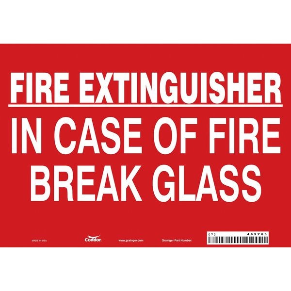 Safety Sign, Vertical Rectangle, Number of Printed Sides 1, English, Sign Legend Fire Extinguisher In Case Of Fire Break Glass, Sign Legend Background Color Red, White, Sign Legend Style Text