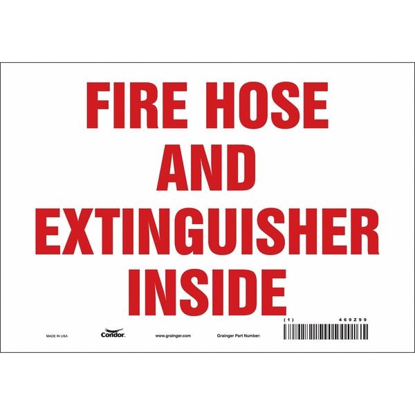 Safety Sign, Vertical Rectangle, Number of Printed Sides 1, English, Sign Legend Fire Hose And Extinguisher Inside, Sign Legend Background Color White, Sign Legend Style Text