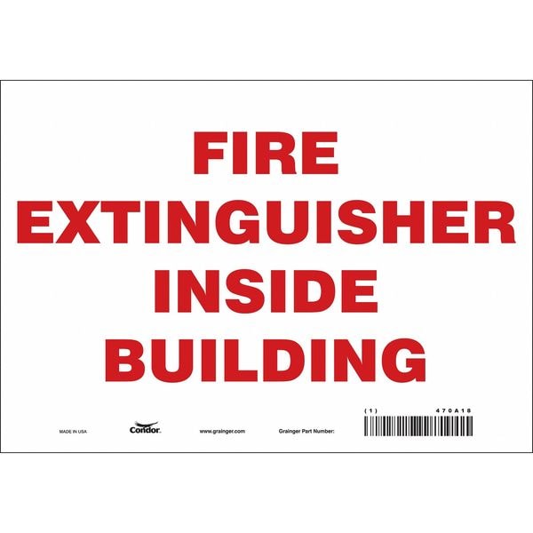 Safety Sign, Vertical Rectangle, Number of Printed Sides 1, English, Sign Format Other Format, Sign Legend Fire Extinguisher Inside Building, Sign Legend Background Color White, Sign Legend Style Text