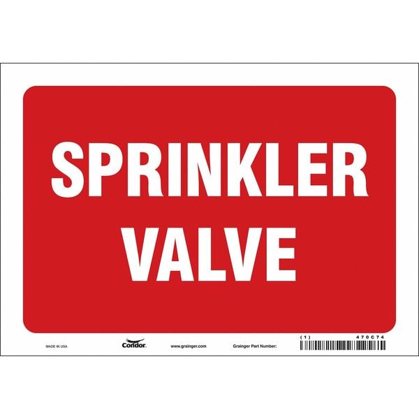 Safety Sign, Vertical Rectangle, Number of Printed Sides 1, English, Sign Legend Sprinkler Valve, Sign Legend Background Color Red; White, Sign Legend Style Text