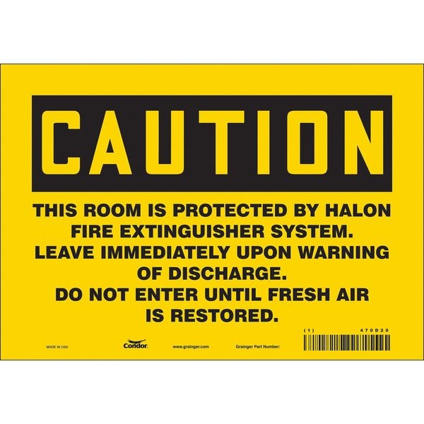 Safety Sign, Vertical Rectangle, Number of Printed Sides 1, English, Sign Legend This Room Is Protected By Halon Fire Extinguisher, Sign Legend Background Color Yellow, Sign Legend Style Text