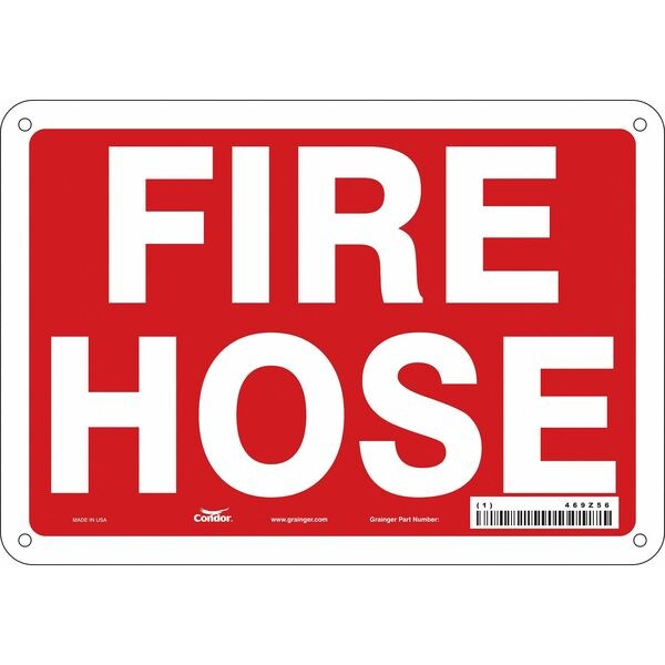 Safety Sign, Vertical Rectangle, Number of Printed Sides 1, English, Sign Legend Fire Hose, Sign Legend Background Color Red, White, Sign Legend Style Text