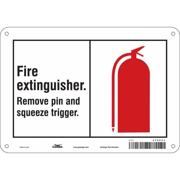 Safety Sign, Vertical Rectangle, Number of Printed Sides 1, English, Sign Format Other Format, Sign Legend Fire Extinguisher Remove Pin And Squeeze Trigger., Sign Legend Background Color White, Sign Legend Style Symbol and Text