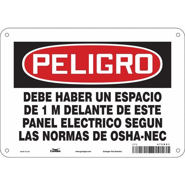 Safety Sign, Vertical Rectangle, Number of Printed Sides 1, Spanish, Sign Format Traditional OSHA, Sign Legend Debe Haber Un Espacio De 1 M Delante De Este Panel Electrico Seguin Las Normas De Osha-Nec, Sign Legend Background Color White, Sign Legend Style Text