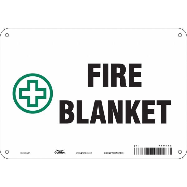 Safety Sign, Vertical Rectangle, Number of Printed Sides 1, English, Sign Legend Fire Blanket, Sign Legend Background Color White, Sign Legend Style Symbol and Text