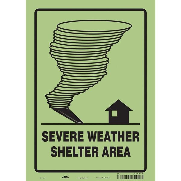 Safety Sign, Vertical Rectangle, Number of Printed Sides 1, English, Sign Format Other Format, Sign Legend Severe Weather Shelter Area, Sign Legend Background Color White, Sign Legend Style Symbol and Text