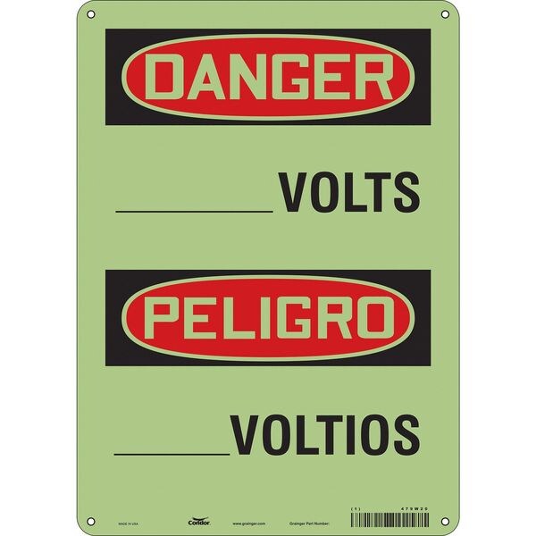 Safety Sign, Vertical Rectangle, Number of Printed Sides 1, English, Spanish, Sign Format Traditional OSHA, Sign Legend ___Volts/___Voltios, Sign Legend Background Color White, Sign Legend Style Text