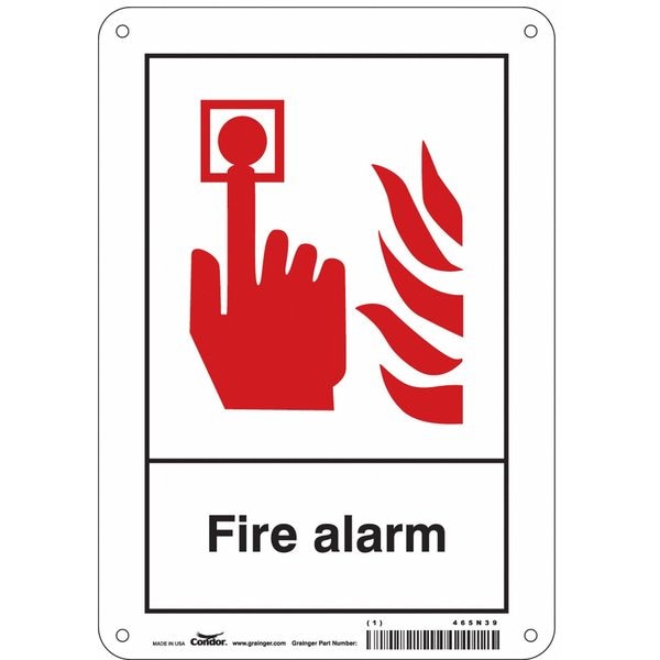 Safety Sign, Horizontal Rectangle, Number of Printed Sides 1, English, Sign Format Other Format, Sign Legend Fire Alarm, Sign Legend Background Color White, Sign Legend Style Symbol and Text