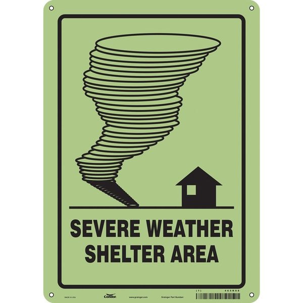 Safety Sign, Vertical Rectangle, Number of Printed Sides 1, English, Sign Legend Severe Weather Shelter Area, Sign Legend Background Color White, Sign Legend Style Symbol and Text