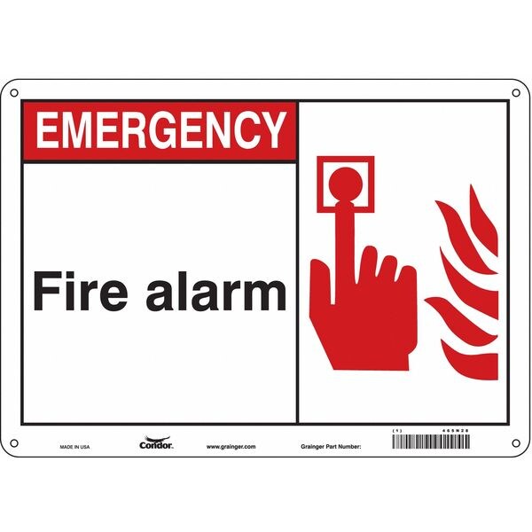 Safety Sign, Horizontal Rectangle, Number of Printed Sides 1, English, Sign Legend Emergency Fire Alarm, Sign Legend Background Color Red, White, Sign Legend Style Symbol and Text