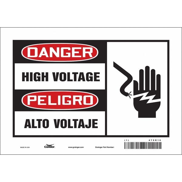 Safety Sign, Vertical Rectangle, Number of Printed Sides 1, English, Spanish, Sign Format Traditional OSHA, Sign Legend High Voltage/Alto Voltaje, Sign Legend Background Color White, Sign Legend Style Symbol and Text