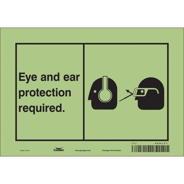 Safety Sign, Vertical Rectangle, Number of Printed Sides 1, English, Sign Format Other Format, Sign Legend Eye And Ear Protection Required., Sign Legend Background Color White, Sign Legend Style Symbol and Text