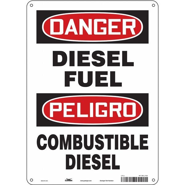Safety Sign, Vertical Rectangle, Number of Printed Sides 1, English, Spanish, Sign Format Traditional OSHA, Sign Legend Diesel Fuel/Combustible Diesel, Sign Legend Background Color White, Sign Legend Style Text