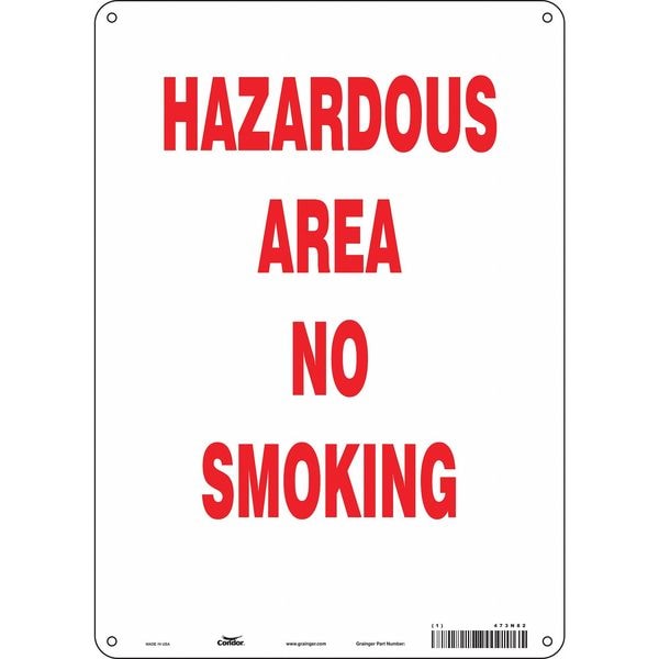 Safety Sign, Vertical Rectangle, Number of Printed Sides 1, English, Sign Format Other Format, Sign Legend Hazardous Area No Smoking, Sign Legend Background Color White, Sign Legend Style Text
