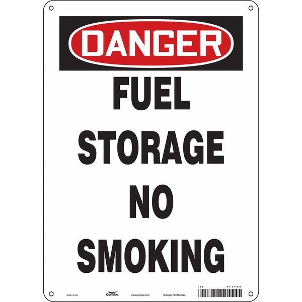 Safety Sign, Vertical Rectangle, Number of Printed Sides 1, English, Sign Format Traditional OSHA, Sign Legend Fuel Storage No Smoking, Sign Legend Background Color White, Sign Legend Style Text