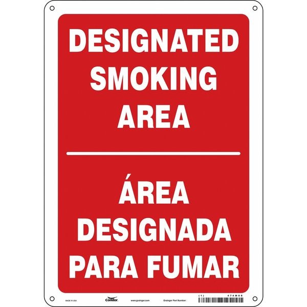 Safety Sign, Vertical Rectangle, Number of Printed Sides 1, English, Spanish, Sign Format Other Format, Sign Legend Designated Smoking Area/Area Designada Para Fumar, Sign Legend Background Color Red, White, Sign Legend Style Text