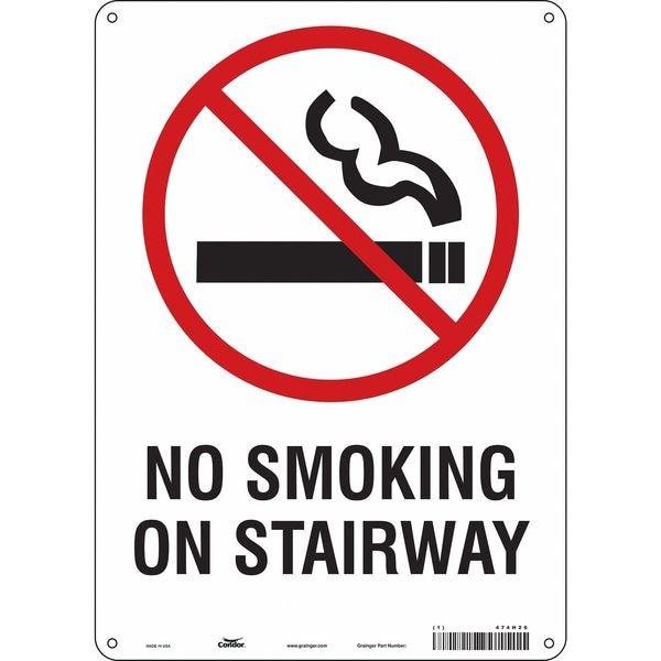 Safety Sign, Vertical Rectangle, Number of Printed Sides 1, English, Sign Format Other Format, Sign Legend No Smoking On Stairway, Sign Legend Background Color White, Sign Legend Style Symbol and Text