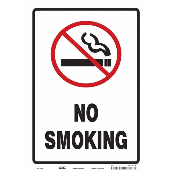 Safety Sign, Vertical Rectangle, Number of Printed Sides 1, English, Sign Format Other Format, Sign Legend No Smoking, Sign Legend Background Color White, Sign Legend Style Symbol and Text