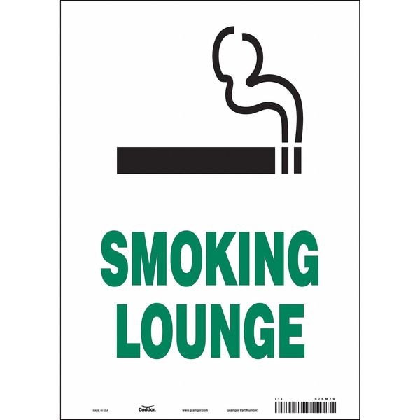 Safety Sign, Vertical Rectangle, Number of Printed Sides 1, English, Sign Format Other Format, Sign Legend Smoking Lounge, Sign Legend Background Color White, Sign Legend Style Symbol and Text