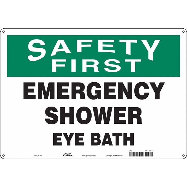 Safety Sign, Horizontal Rectangle, Number of Printed Sides 1, English, Sign Legend Emergency Shower Eye Bath, Sign Legend Background Color White, Sign Legend Style Text