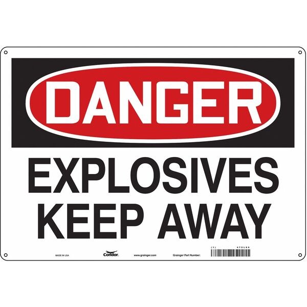 Safety Sign, Horizontal Rectangle, Number of Printed Sides 1, English, Sign Format Traditional OSHA, Sign Legend Explosives Keep Away, Sign Legend Background Color White, Sign Legend Style Text