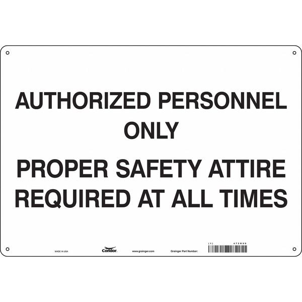 Safety Sign, Horizontal Rectangle, Number of Printed Sides 1, English, Sign Format Other Format, Sign Legend Authorized Personnel Only Proper Safety Attire Required At All Times, Sign Legend Background Color White, Sign Legend Style Text