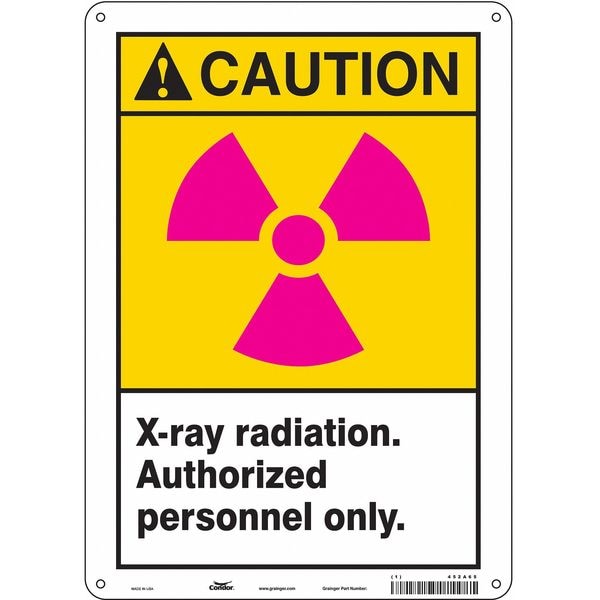 Safety Sign, Vertical Rectangle, Number of Printed Sides 1, English, Sign Format ANSI/OSHA Format, Sign Legend X-Ray Radiation. Authorized Personnel Only., Sign Legend Background Color White, Yellow, Sign Legend Style Symbol and Text