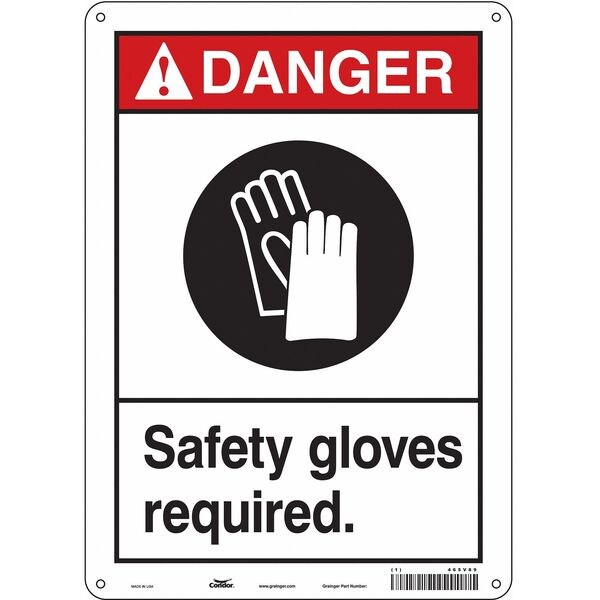 Safety Sign, Vertical Rectangle, Number of Printed Sides 1, English, Sign Format ANSI/OSHA Format, Sign Legend Safety Gloves Required., Sign Legend Background Color White, Sign Legend Style Symbol and Text