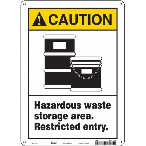 Safety Sign, Vertical Rectangle, Number of Printed Sides 1, English, Sign Format ANSI/OSHA Format, Sign Legend Hazardous Waste Storage Area. Restricted Entry., Sign Legend Background Color White, Sign Legend Style Symbol and Text
