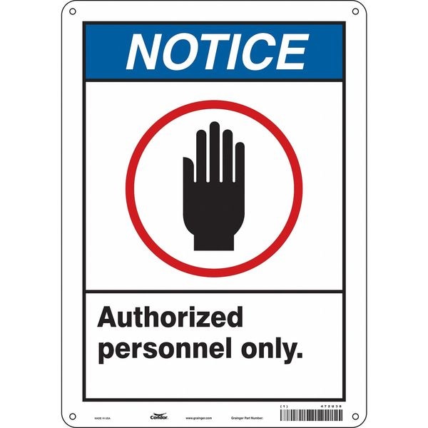 Safety Sign, Vertical Rectangle, Number of Printed Sides 1, English, Sign Format ANSI/OSHA Format, Sign Legend Authorized Personnel Only., Sign Legend Background Color White, Sign Legend Style Symbol and Text