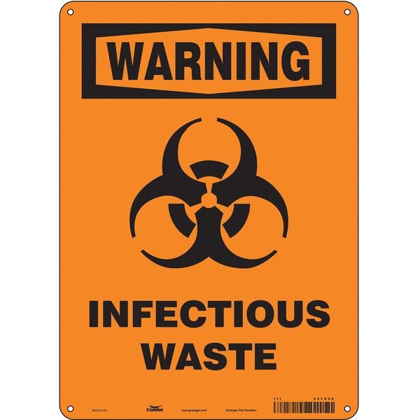 Safety Sign, Vertical Rectangle, Number of Printed Sides 1, English, Sign Format Traditional OSHA, Sign Legend Infectious Waste, Sign Legend Background Color Orange, Sign Legend Style Symbol and Text