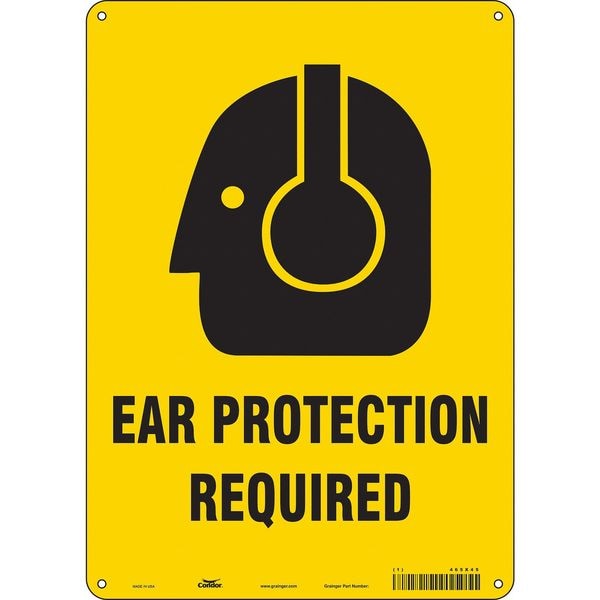 Safety Sign, Vertical Rectangle, Number of Printed Sides 1, English, Sign Format Other Format, Sign Legend Ear Protection Required, Sign Legend Background Color Yellow, Sign Legend Style Symbol and Text