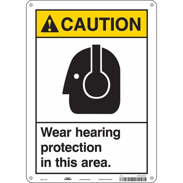 Safety Sign, Vertical Rectangle, Number of Printed Sides 1, English, Sign Format ANSI/OSHA Format, Sign Legend Wear Hearing Protection In This Area., Sign Legend Background Color White, Sign Legend Style Symbol and Text