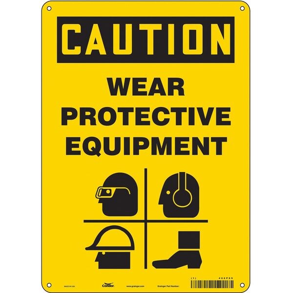 Safety Sign, Vertical Rectangle, Number of Printed Sides 1, English, Sign Format Traditional OSHA, Sign Legend Wear Protective Equipment, Sign Legend Background Color Yellow, Sign Legend Style Symbol and Text