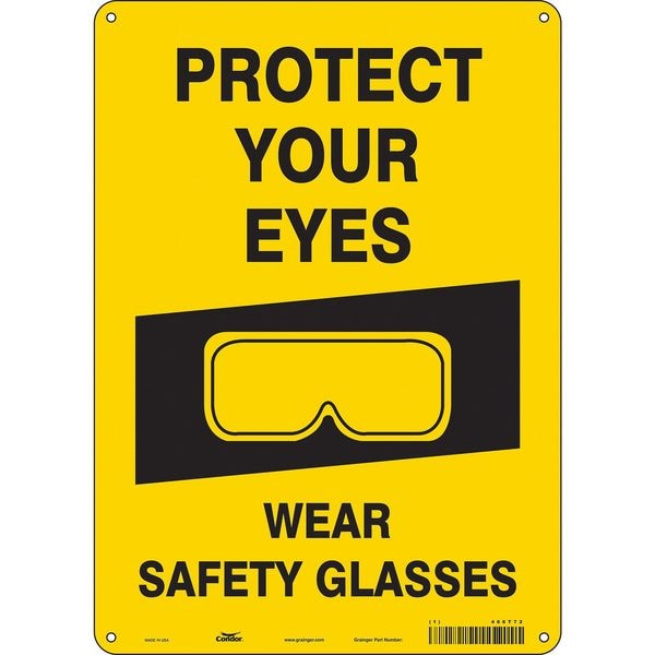 Safety Sign, Vertical Rectangle, Number of Printed Sides 1, English, Sign Format Other Format, Sign Legend Protect Your Eyes Wear Safety Glasses, Sign Legend Background Color Yellow, Sign Legend Style Symbol and Text
