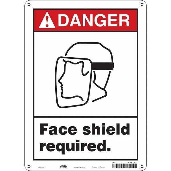 Safety Sign, Vertical Rectangle, Number of Printed Sides 1, English, Sign Format ANSI/OSHA Format, Sign Legend Face Shield Required., Sign Legend Background Color White, Sign Legend Style Symbol and Text
