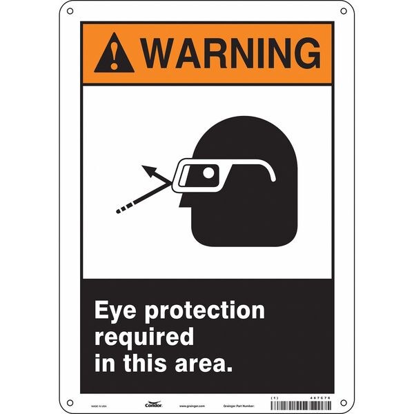 Safety Sign, Vertical Rectangle, Number of Printed Sides 1, English, Sign Format ANSI/OSHA Format, Sign Legend Eye Protection Required In This Area., Sign Legend Background Color Black, White, Sign Legend Style Symbol and Text