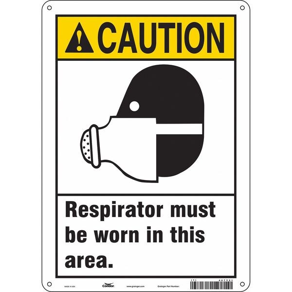 Safety Sign, Vertical Rectangle, Number of Printed Sides 1, English, Sign Format ANSI/OSHA Format, Sign Legend Respirators Must Be Worn In This Area, Sign Legend Background Color White, Sign Legend Style Symbol and Text