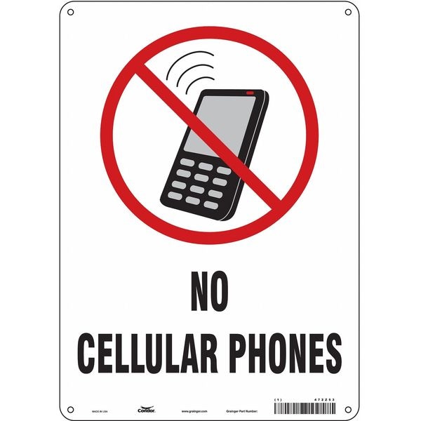 Safety Sign, Vertical Rectangle, Number of Printed Sides 1, English, Sign Format Other Format, Sign Legend No Cellular Phones, Sign Legend Background Color White, Sign Legend Style Symbol and Text