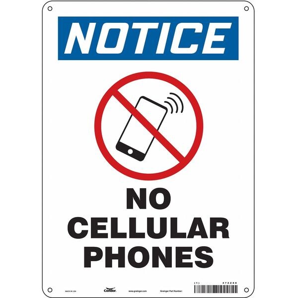 Safety Sign, Vertical Rectangle, Number of Printed Sides 1, English, Sign Format Traditional OSHA, Sign Legend No Cellular Phones, Sign Legend Background Color White, Sign Legend Style Symbol and Text