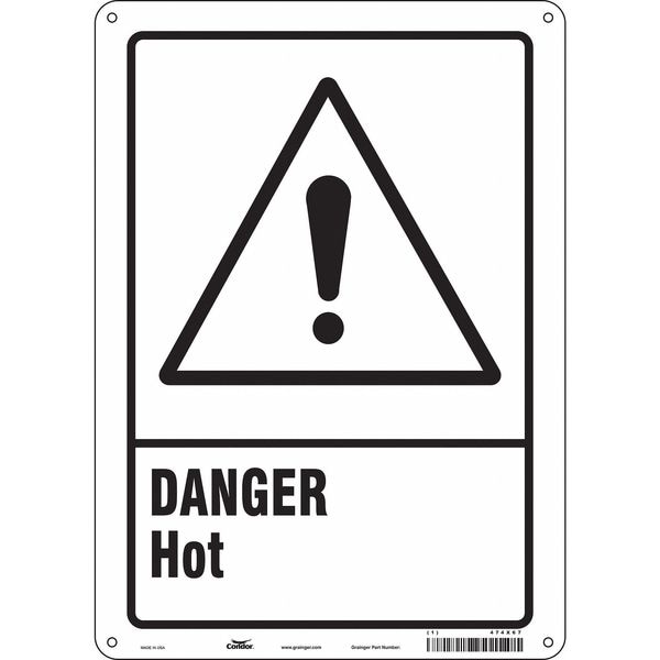 Safety Sign, Vertical Rectangle, Number of Printed Sides 1, English, Sign Format Other Format, Sign Legend Danger Hot, Sign Legend Background Color White, Sign Legend Style Symbol and Text