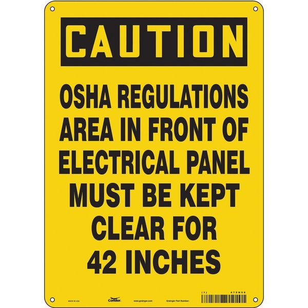 Safety Sign, Vertical Rectangle, Number of Printed Sides 1, English, Sign Format Traditional OSHA, Sign Legend Osha Regulations Area In Front Of Electrical Panel Must Be Kept Clear For 42 Inches, Sign Legend Background Color Yellow, Sign Legend Style Text
