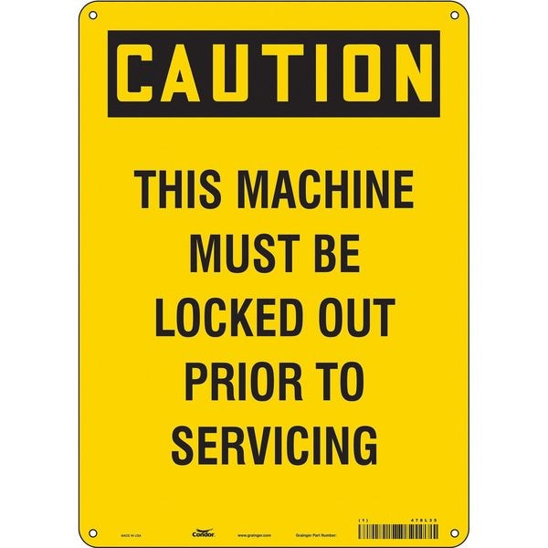 Safety Sign, Vertical Rectangle, Number of Printed Sides 1, English, Sign Format Traditional OSHA, Sign Legend This Machine Must Be Locked Out Prior To Servicing, Sign Legend Background Color Yellow, Sign Legend Style Text