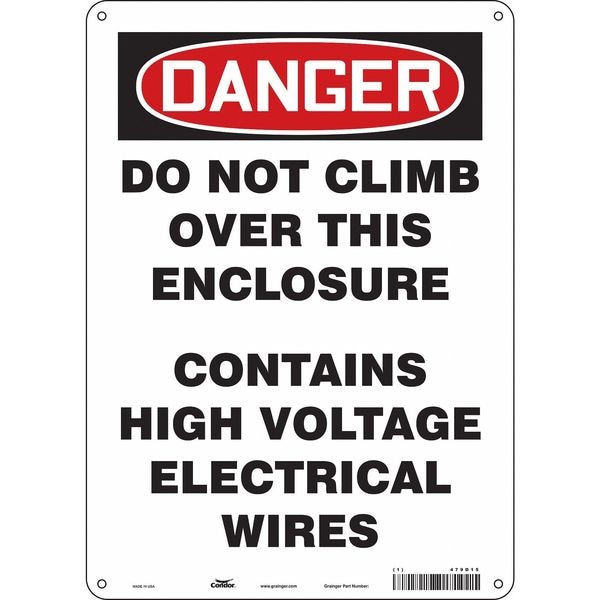 Safety Sign, Vertical Rectangle, Number of Printed Sides 1, English, Sign Format Traditional OSHA, Sign Legend Do Not Climb Over This Enclosure Contains High Voltage Electrical Wires, Sign Legend Background Color White, Sign Legend Style Text