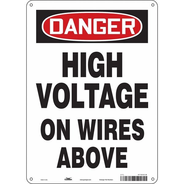 Safety Sign, Vertical Rectangle, Number of Printed Sides 1, English, Sign Format Traditional OSHA, Sign Legend High Voltage On Wires Above, Sign Legend Background Color White, Sign Legend Style Text