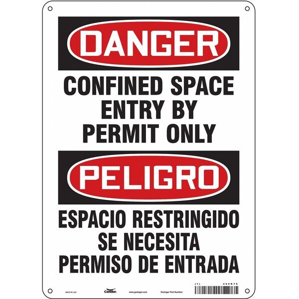 Safety Sign, Vertical Rectangle, Number of Printed Sides 1, English, Spanish, Sign Format Traditional OSHA, Sign Legend Confined Space Entry By Permit Only/Espacio Restringido Se Necesita Permiso De Entrada, Sign Legend Background Color White, Sign Legend Style Text